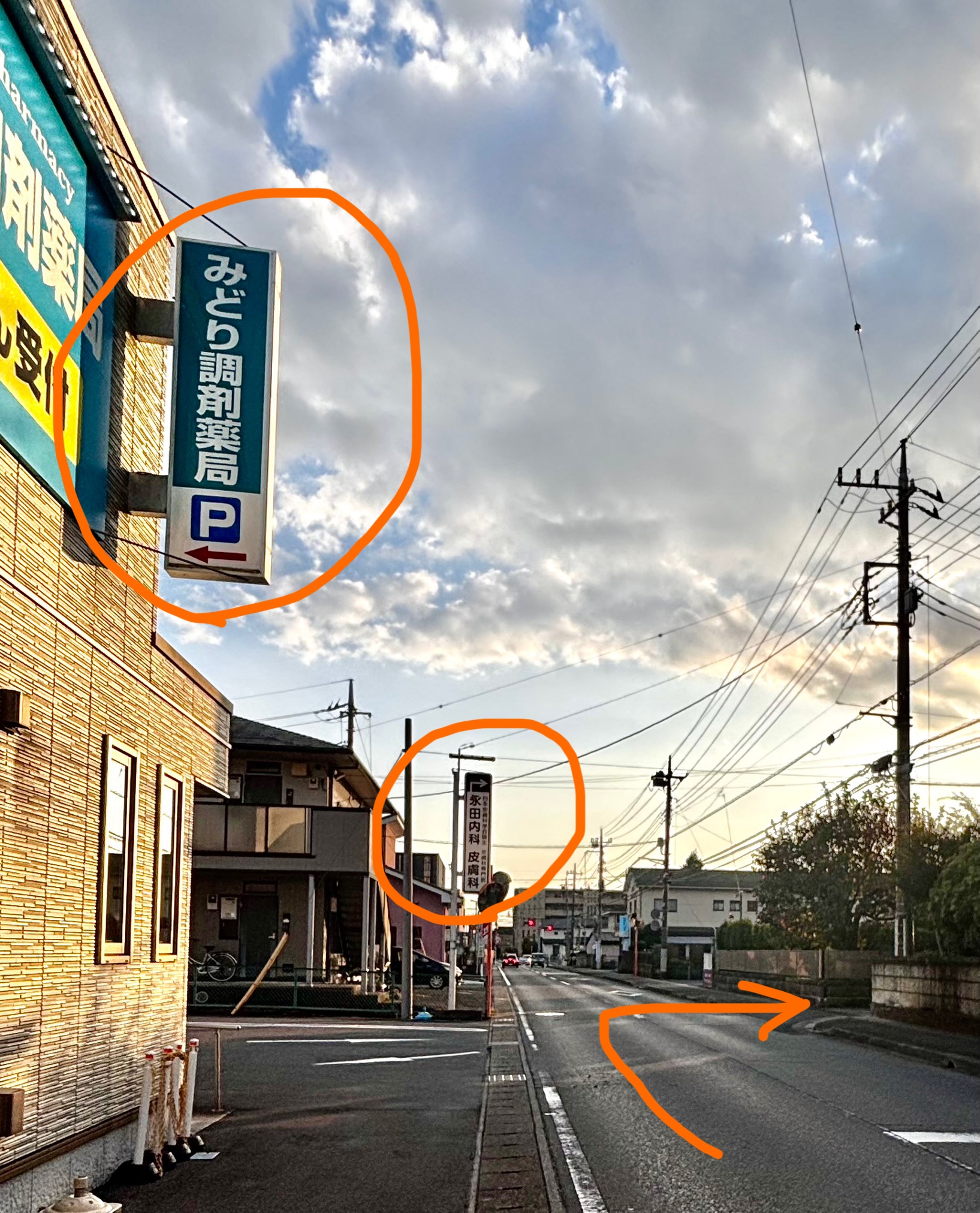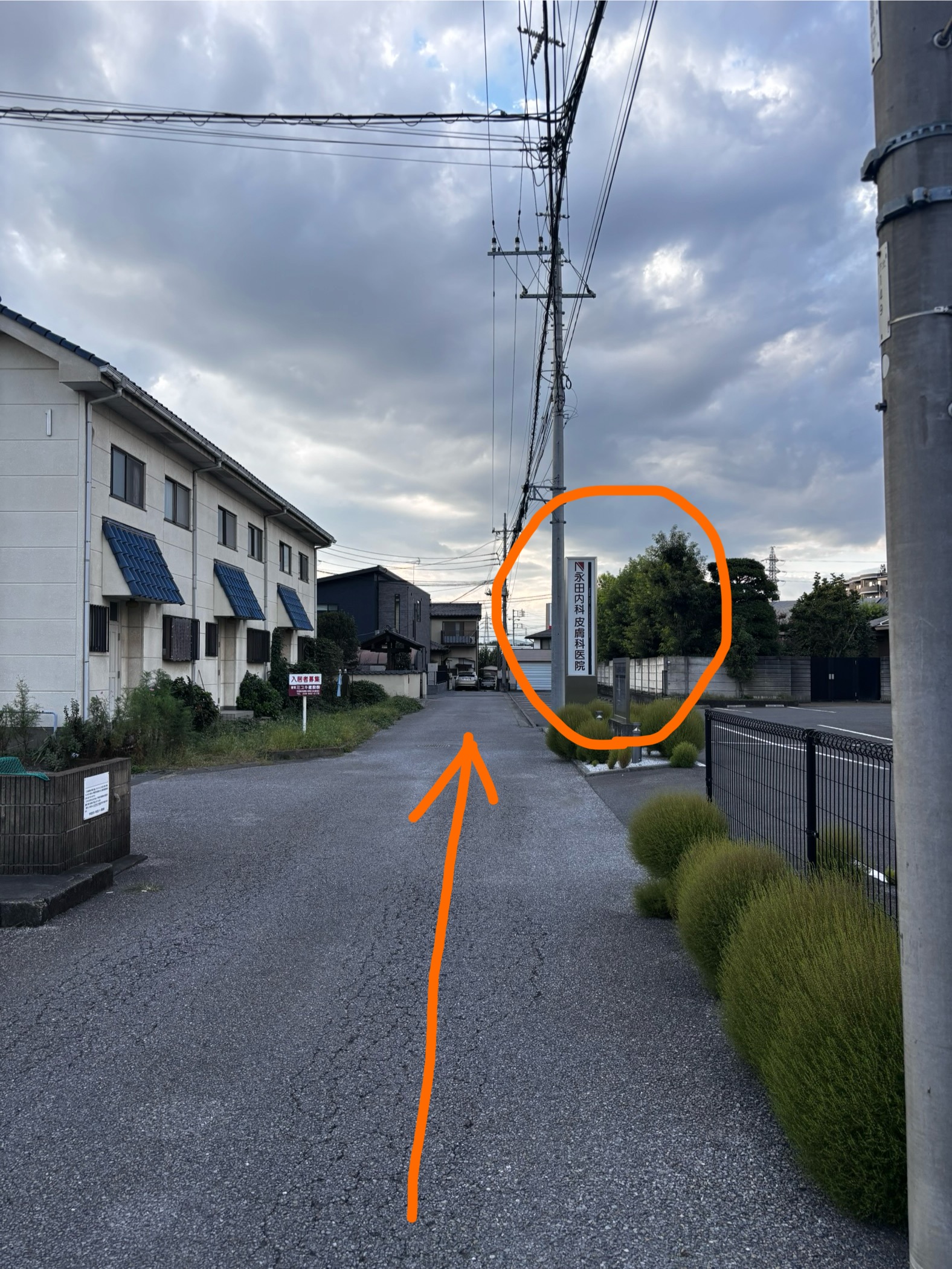 永田内科皮膚科さんを目指して看板の通りに右に曲がります。